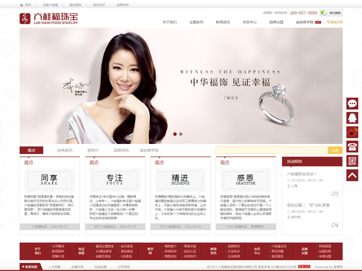 | 項目需求概況: | 網(wǎng)址:http://www.lukkwaifook.com/ 六桂福珠寶是一家有著悠久歷史的中華福飾巨匠品牌,是中國傳統(tǒng)珠寶文化中的杰出代表。六桂福珠寶的誕生,要從興盛古今的六桂堂說起。六桂堂作為我國 |