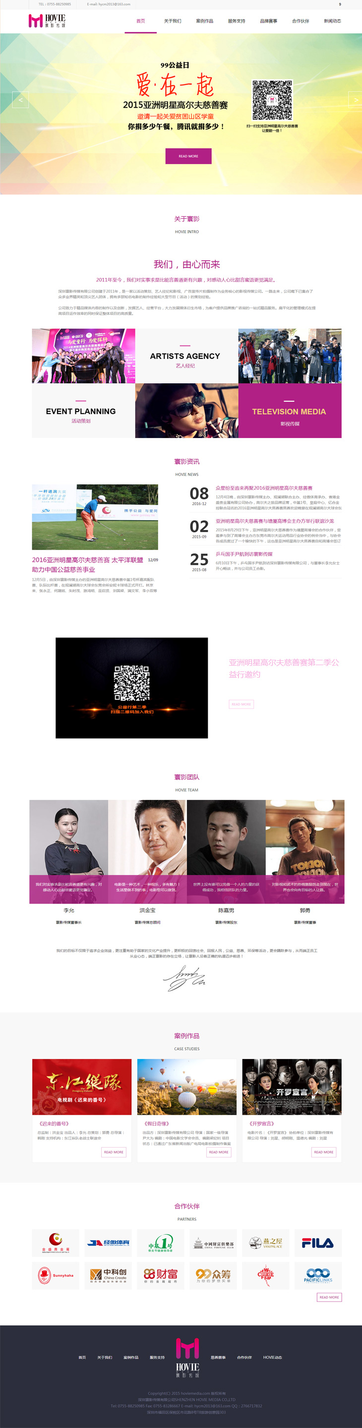 深圳寰影傳媒有限公司創(chuàng)建于2011年,是一家以活動策劃、藝人經(jīng)紀和廣告宣傳片拍攝制作為業(yè)務(wù)核心的影視傳媒公司。一路走來,公司麾下已集合了眾多業(yè)界精英和頂尖藝人團體,擁有多部知名電影的制作經(jīng)驗和大型節(jié)目(活動)的策劃經(jīng)驗。